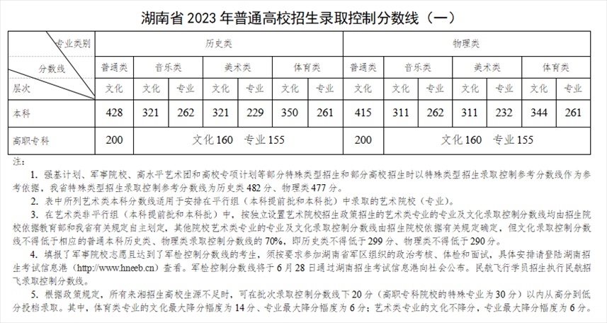人民網(wǎng)北京6月25日電 據(jù)湖南省教育考試院消息,今天,湖南省2023年普通高校招生各批次錄取控制分?jǐn)?shù)線(xiàn)公布,本科普通類(lèi)中,歷史類(lèi)428分、物理類(lèi)415分;特殊類(lèi)型招生錄取控制參考分?jǐn)?shù)線(xiàn)中,歷史類(lèi)482分、物理類(lèi)477分。(李依環(huán)、實(shí)習(xí)生張婉柔)