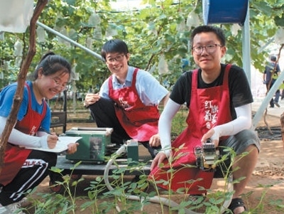 人才培養(yǎng)在遼寧省營(yíng)口市鲅魚(yú)圈區(qū)葡萄科技小院,沈陽(yáng)農(nóng)業(yè)大學(xué)師生在田間進(jìn)行指標(biāo)測(cè)定。邢若男攝(人民視覺(jué))