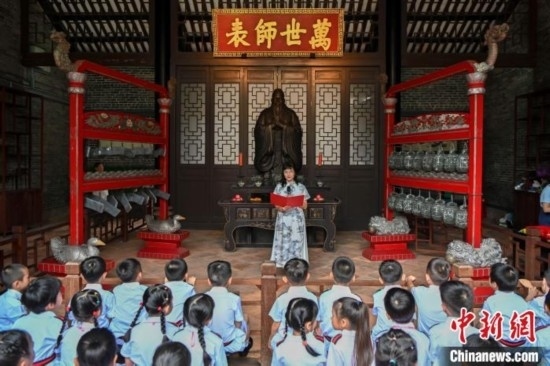 當(dāng)天參與開學(xué)禮的是該校第五屆港澳子弟班的學(xué)生??缀缭趯W(xué)子首課環(huán)節(jié)向一年級新生們重點講述文化自信的重要性,并稱:“開筆禮是對傳統(tǒng)文化的傳承和繼承,也是學(xué)生邁開學(xué)習(xí)第一步的重要儀式?!?/p>