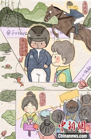 10月2日,中國(guó)隊(duì)首次獲得亞運(yùn)馬術(shù)項(xiàng)目金牌,實(shí)現(xiàn)“零的突破”。高銘還特地畫(huà)了一幅中國(guó)騎手華天奪冠的漫畫(huà),以此紀(jì)念這一歷史性時(shí)刻。她希望有機(jī)會(huì)以“小青荷”的名義將這幅漫畫(huà)送給華天,表達(dá)對(duì)他榮獲冠軍、為國(guó)爭(zhēng)光的祝賀。