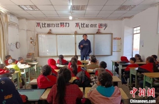 除了教語文,宮宇洋還教體育。他把滿是碎石的學校老操場一點點收拾干凈,打造出一塊籃球場,并畫出幾條跑道。做游戲、打籃球、開運動會……新操場得到了充分利用,放學后師生們還坐在一起數(shù)星星。