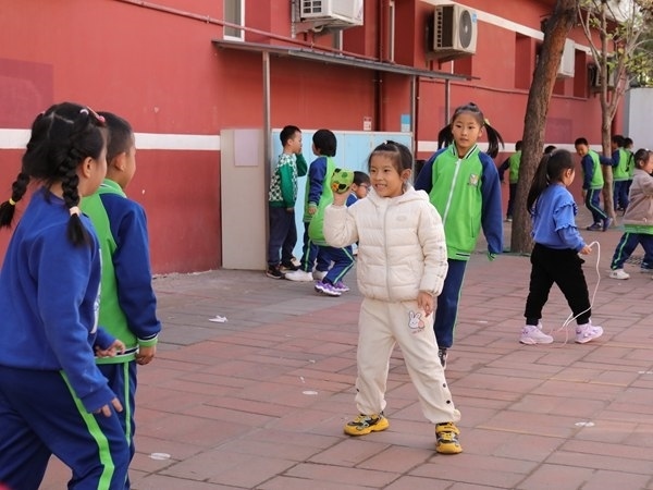 孩子們利用課間時(shí)間跳繩。