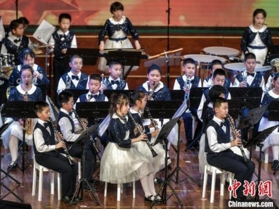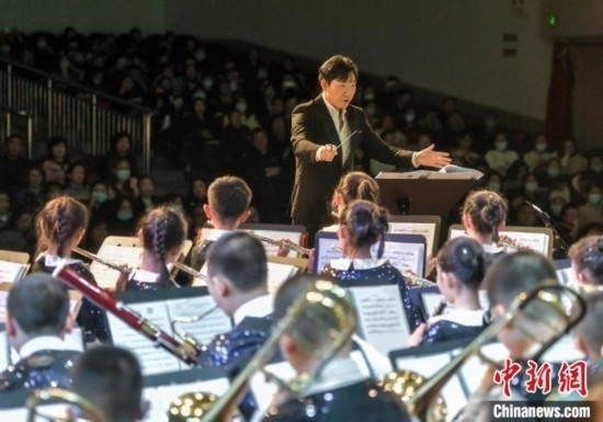 12月27日,新疆烏魯木齊市沙依巴克區(qū)教育系統(tǒng)“龍行龘龘 樂動童年”2024年交響管樂新年音樂會在該市青少年宮舉辦,來自烏魯木齊市第27小學的交響管樂團演奏了《紅旗頌》、《茉莉花》等經(jīng)典曲目,并與絲路名師合唱團合作演出《青春之舞》、《最炫民族風》等曲目。據(jù)介紹,該交響管樂團成立于2014年,規(guī)模從最初的40余人發(fā)展到現(xiàn)今近70人,團員平均年齡10歲。