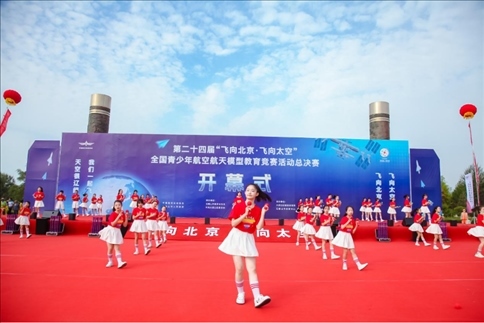 第二十四屆全國(guó)青少年航空航天模型教育競(jìng)賽活動(dòng)總決賽舉辦 開幕式現(xiàn)場(chǎng)表演。圖片來(lái)源:寧夏石嘴山大武口區(qū)教育體......
