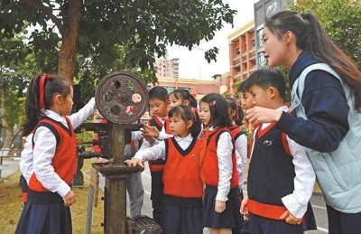 2022年3月,九龍坡區(qū)教委印發(fā)《關(guān)于推進中小學(xué)集團化辦學(xué)的意見》,謝家灣金茂小學(xué)成為謝家灣教育集團一體化辦學(xué)成員校。謝家灣金茂小學(xué)的前身是重慶建設(shè)工業(yè)(集團)有限公司子弟學(xué)校,約1/3的教師曾是工廠職工?!盎趯W(xué)校情況,我們強調(diào)培養(yǎng)學(xué)生養(yǎng)成熱愛勞動的習(xí)慣,形成陽光心態(tài)?!敝x家灣金茂小學(xué)黨總支書記楊永財指著校園內(nèi)擺放的老舊機床說,“重慶建設(shè)工業(yè)(集團)有限公司發(fā)展歷史厚重,學(xué)校積極挖掘紅色資源,給孩子們講好革命歷史,上好思政課?!?/p>