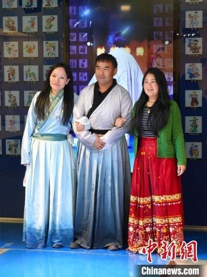 4月3日,北京華文學(xué)院“中不中文培訓(xùn)研修班”的3名不丹學(xué)員身著漢服體驗(yàn)T臺走秀。(中新網(wǎng)記者韓輝攝)