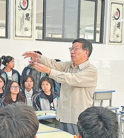 忻元華和支教的緣分,還得從2015年說起。從寧波一所高校副校長崗位上退休后,他發(fā)揮自動(dòng)化專業(yè)優(yōu)勢,在中小學(xué)校、社區(qū)里做科普講座。2015年,抱著試一試的想法,忻元華參加了支教志愿者團(tuán)隊(duì)。此后的9年里,從湖南溆浦到甘肅隴西,再到四川涼山,忻元華帶著自制的科學(xué)教具,跋山涉水,把科學(xué)知識(shí)帶進(jìn)大山,點(diǎn)燃孩子們對科學(xué)的熱愛。