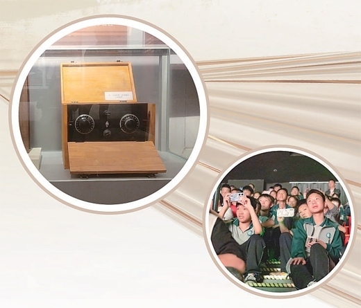 上圖:遵義會議會址展出的“半部電臺”復(fù)制品。下圖:學(xué)生們觀看《偉大轉(zhuǎn)折》演出。以上圖片均為遵義市委宣傳部提供