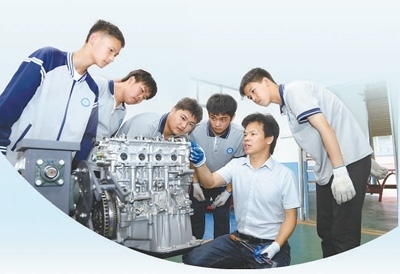江西萍鄉(xiāng)市湘東中等專業(yè)學(xué)校,學(xué)生在學(xué)習(xí)發(fā)動(dòng)機(jī)拆裝與檢測技能。任乾良攝(影像中國)