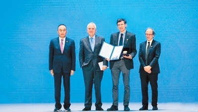 克萊因伯格(右二)被授予2024世界頂尖科學(xué)家協(xié)會獎“智能科學(xué)或數(shù)學(xué)獎”。圖為領(lǐng)獎現(xiàn)場。(資料圖)