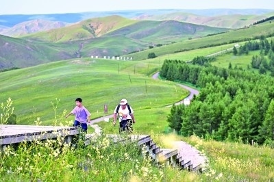 家長與孩子在內蒙古大青山國家級自然保護區(qū)徒步。新華社發(fā)