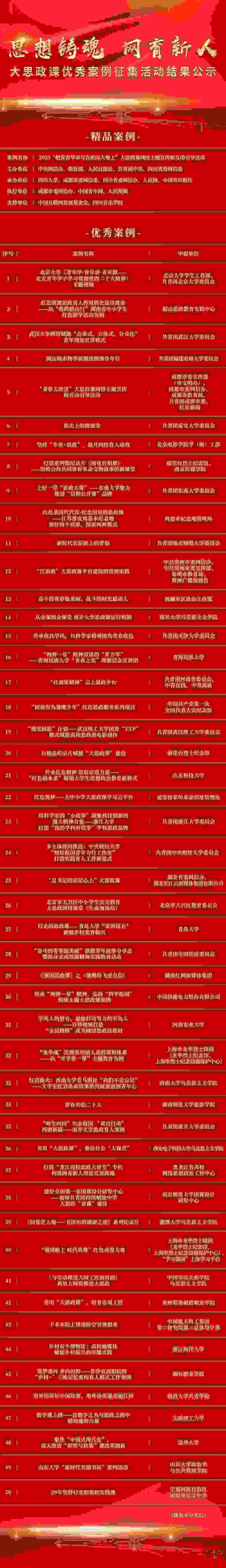 由中央網(wǎng)信辦網(wǎng)絡(luò)傳播局、共青團(tuán)中央宣傳部指導(dǎo),人民網(wǎng)、中國(guó)青年報(bào)社共同主辦的“思想鑄魂 網(wǎng)育新人”大思政課優(yōu)秀案例征集活動(dòng)評(píng)選結(jié)果已經(jīng)產(chǎn)生,現(xiàn)對(duì)擬入選案例進(jìn)行公示,公示時(shí)間為1月20日至1月24日,公示期間歡迎社會(huì)各界監(jiān)督評(píng)議,有關(guān)意見(jiàn)可發(fā)送至郵箱eduyouth@163.com,我們將及時(shí)受理、認(rèn)真核查,公示期滿(mǎn)后將適時(shí)對(duì)外發(fā)布最終結(jié)果。