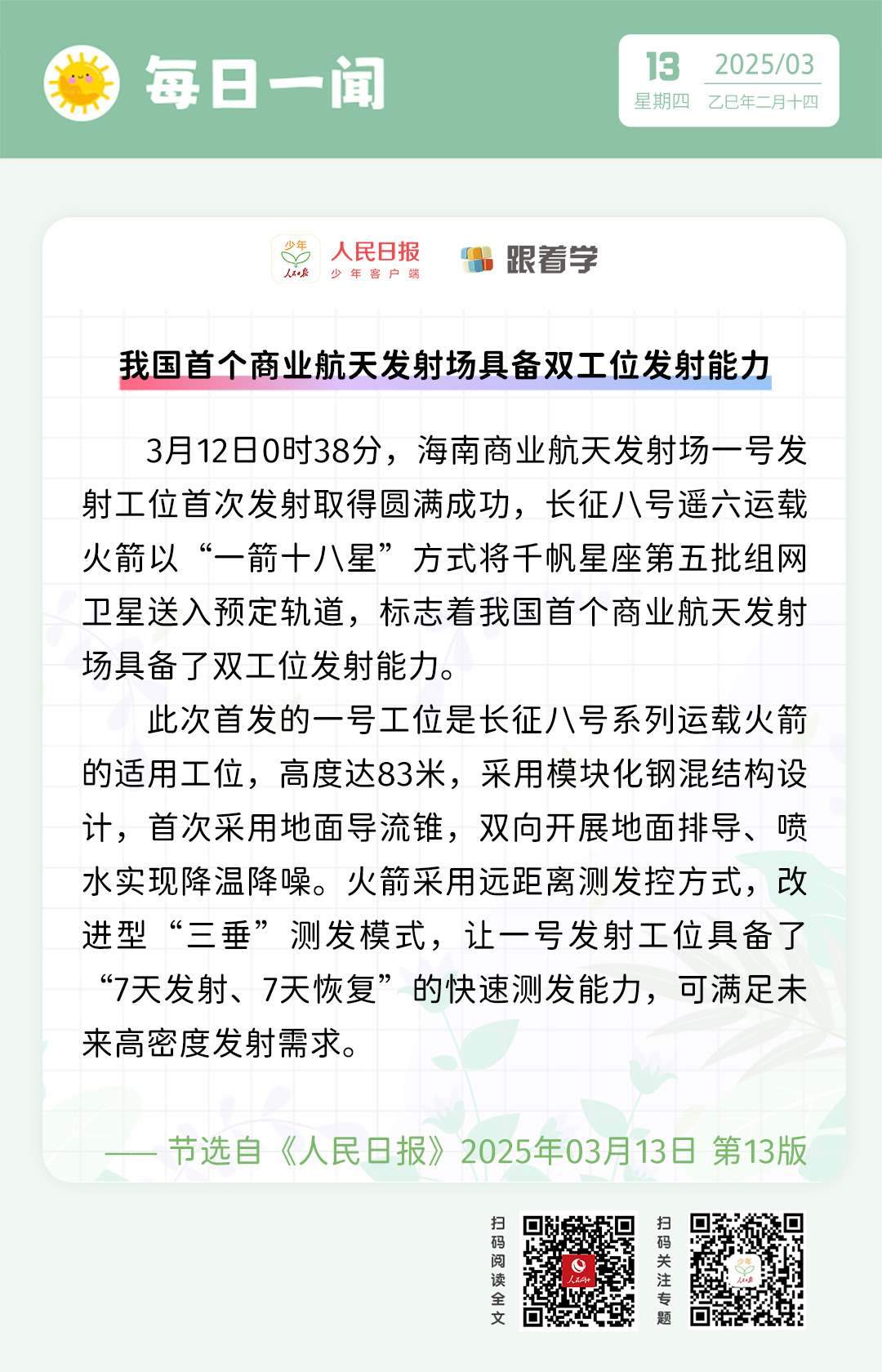 每日一聞丨我國首個(gè)商業(yè)航天發(fā)射場具備雙工位發(fā)射能力