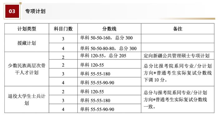 注*:按研究方向分計(jì)劃招生的,總分要求以考生報(bào)考的研究方向普通考生實(shí)際復(fù)試分?jǐn)?shù)線為參照基準(zhǔn)。