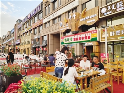 與大召濃厚的本土文化特色相比,惱包村是另外一種具有江南風格的消遣之地,人們流連于它的小橋流水,在這里不僅大人們可以消遣,孩子們也有游玩的地方。旋轉木馬、跳跳床等,給孩子們增添了更多的歡樂。而在萬達花樣年華步行街,因為開放夜市,沿街商戶的營業(yè)時間延長到了晚上22時,這對于經(jīng)營水果、蔬菜生意的店老板閆先生來說無疑是好消息?!耙故胁砰_了幾天,我們家的營業(yè)額就大幅度提升了,比之前要多出來1000塊錢,因為周邊就是居民小區(qū),大家出來閑逛,看到蔬菜、水果自然而然的就會挑選,我們的生意也就好做了?!遍Z先生說。
