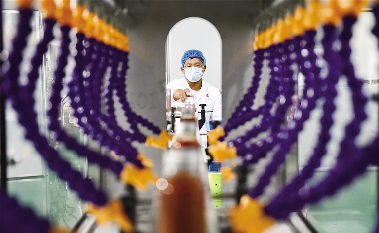 7月6日,內(nèi)蒙古昌興達(dá)實(shí)業(yè)有限責(zé)任公司的工人正在生產(chǎn)線上作業(yè)。該公司采取“公司+基地+農(nóng)戶”的標(biāo)準(zhǔn)化管理模式,與260多戶農(nóng)戶簽訂了有機(jī)枸杞種植協(xié)議,由公司免費(fèi)為農(nóng)戶提供生物農(nóng)藥、管理技術(shù),并高于市場價(jià)回收,既保障了枸杞的品質(zhì),也促進(jìn)了農(nóng)戶增收。廠區(qū)擁有枸杞干果、有機(jī)枸杞原漿、西紅柿原漿等多條生產(chǎn)線,產(chǎn)品出口歐美等26個(gè)國家和地區(qū)。(本報(bào)記者 孟和朝魯 攝)