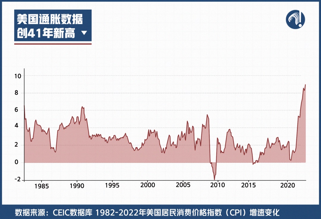 疫情期間,美國不僅以6.5%的經(jīng)濟損失率(剔除宏觀經(jīng)濟政策影響之后),位居調(diào)查中涉及的各國前列。更直接的表現(xiàn),就是美國通脹水平創(chuàng)41年新高。