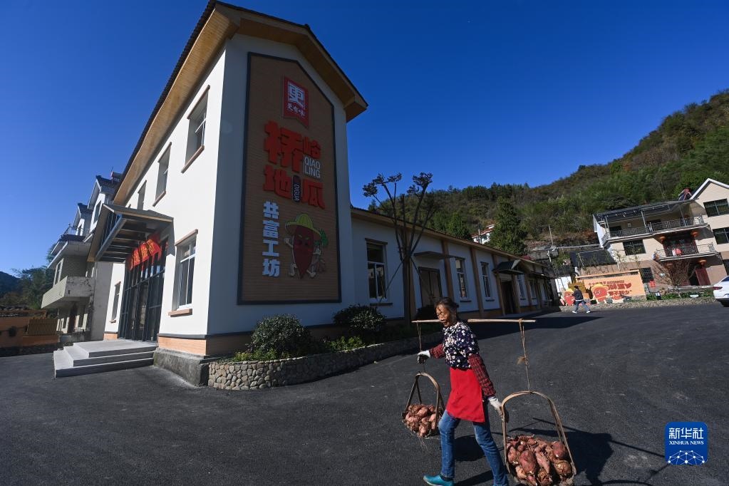 11月23日,村民把剛收獲的地瓜送到浙江省建德市更樓街道橋嶺村共富工坊里進行統(tǒng)一加工。新華社記者 徐昱 攝