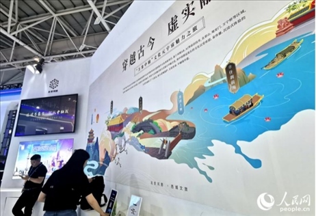 “我們對(duì)北京中軸線的場(chǎng)景進(jìn)行了復(fù)刻,構(gòu)筑了中軸線元宇宙,如果游客觀光北京中軸線上的打卡點(diǎn),用手機(jī)掃描眼前的景色,就會(huì)出現(xiàn)現(xiàn)實(shí)與虛擬交織的場(chǎng)景,仿佛穿越古今,置身于千百年前的時(shí)空。”北京河圖公司工作人員陳頌在展會(huì)現(xiàn)場(chǎng)介紹說。