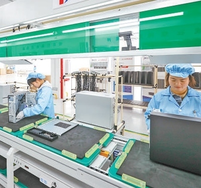 工人在畢節(jié)一家計(jì)算機(jī)生產(chǎn)企業(yè)產(chǎn)線上組裝產(chǎn)品。陳 曦?cái)z(人民視覺(jué))