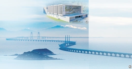 圖①:鵬城云腦大科學(xué)裝置。鵬城實(shí)驗(yàn)室供圖 圖②:晨曦中的港珠澳大橋。新華社記者 劉大偉攝