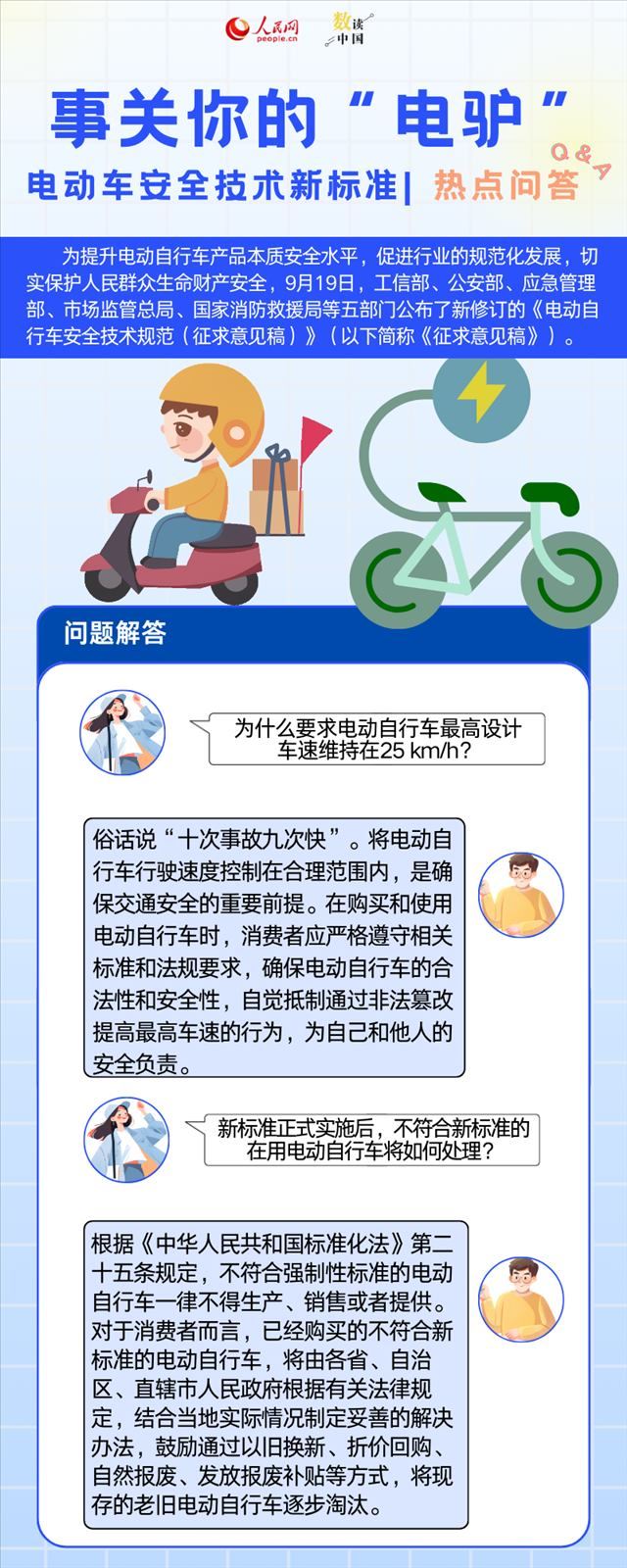 人民網(wǎng)北京9月19日電 (申佳平、方經(jīng)綸)為提升電動自行車產(chǎn)品本質(zhì)安全水平,促進(jìn)行業(yè)的規(guī)范化發(fā)展,切實保護(hù)人民群眾生命財產(chǎn)安全,9月19日,工信部、公安部、應(yīng)急管理部、市場監(jiān)管總局、國家消防救援局等五部門公布了新修訂的《電動自行車安全技術(shù)規(guī)范(征求意見稿)》(以下簡稱《征求意見稿》)。