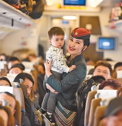 在蘭新高鐵D8803次列車上,乘務員與旅客互動。擺風亮攝(影像中國)