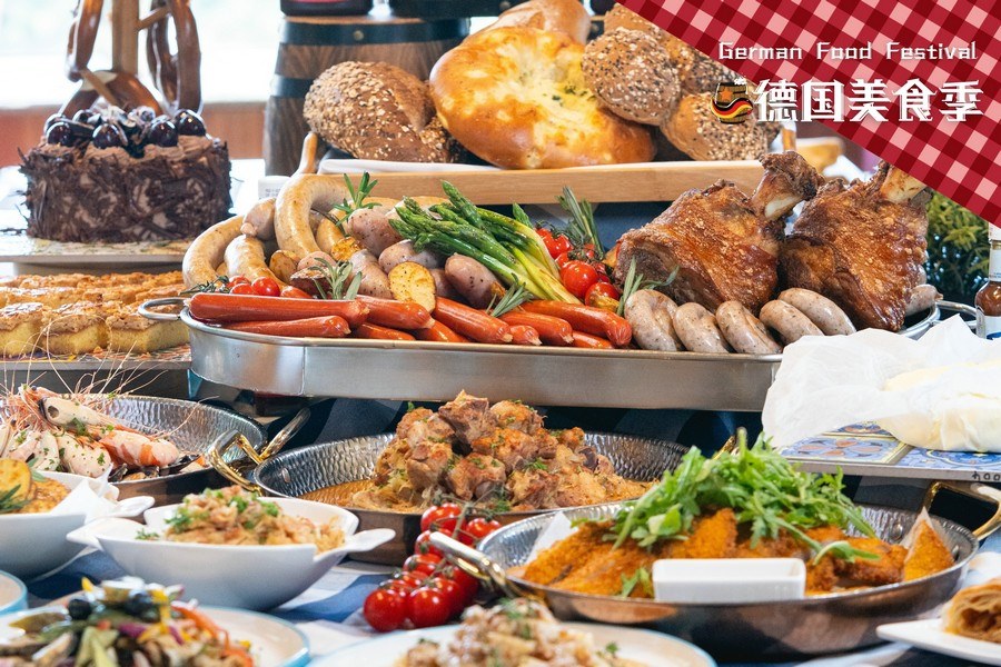 馨咖啡——海鮮洋酒自助,在行政總廚Jerry張強的加持下,再度增添美味的獨特體驗,8月9日—8月25日,正宗德式美食驚艷亮相!德國美食以其豐富多樣、實在美味和濃郁地方特色而聞名。來自德國巴伐利亞地區(qū)的特色美食“烤豬肘”, 外皮金黃酥脆,內(nèi)部肉質(zhì)鮮嫩多汁,搭配酸菜和土豆泥,口感豐富; 德國香腸種類繁多,芝士香腸、盤腸、圖靈根腸、法蘭克福腸、黑胡椒腸,制作工藝獨特,口味多樣;維也納炸豬排,酥脆的外皮和鮮嫩的肉質(zhì)形成的鮮明口感對比;德式芥末燴海鮮,德式芥末為這道菜帶來獨特的風味,奶油、白葡萄酒、香草等調(diào)料,使湯汁變得濃郁醇厚,海鮮鮮嫩多汁,湯汁濃郁鮮美。更有享譽盛名的德國啤酒選擇,大麥的醇厚香氣、啤酒花的微微苦澀相互交織,營造出一種平衡而美妙的口感。