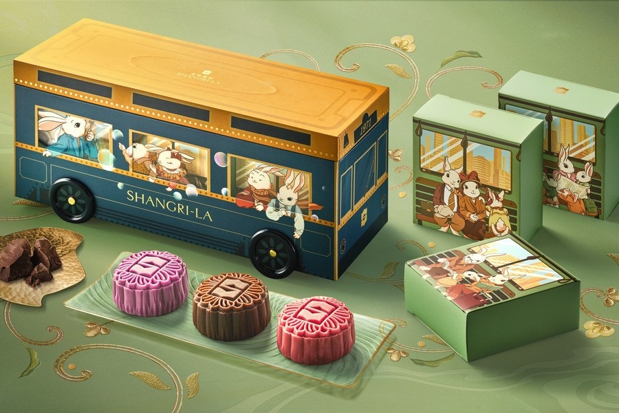 童心未泯家庭款月餅,創(chuàng)意可愛的小火車造型,一盒囊括哈密瓜鳳梨雙果、紅豆山楂、巧克力牛奶芯三種新穎口味,滿載溫馨與甜蜜緩緩駛來;賞心月目雪媚娘流心月餅,打破傳統(tǒng)的禮盒,采用了別致巧思的浪漫禮包,包內(nèi)裝有雪媚娘巧克力流心核桃栗子、烏龍白桃水蜜桃流心、陳皮土鳳梨金桔流心和抹茶紅豆草莓流心月餅,細膩爽口,唇齒滿足, 給味蕾帶來別樣享受;八方鴻運月餅,八珍玉食,八面玲瓏,禮盒中包含廣式單黃白蓮蓉、蘇式百果椒鹽、瓊式純鳳梨酥、京式自來紅、潮式松露鮑魚、晉式蛋月燒棗泥松仁、滇式玫瑰云腿、川香牛肉藤椒軟心,可甜可咸,款款新意,薈萃八方鴻運,饋贈四方親朋;香格里拉手提箱月餅,設(shè)計精巧的手提箱,薈萃亞洲滋味,馬來西亞白咖啡、椰汁西米、宇治抹茶、榴蓮、芒果柚子、香蘭葉月餅,一盒六味,配上軟糯綿化的桃山皮,一口甘香,馥郁悠長。一系列月餅禮盒,結(jié)合濃郁當?shù)靥厣摹把蛉舛Y盒”、“燒麥禮盒”、“烤羊腿禮盒”,還有香格里拉定制青島啤酒、醬香白酒、甄選紅酒等為節(jié)日助興。