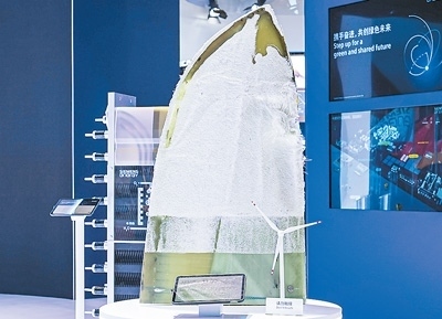 西門(mén)子能源展出全球首款可回收風(fēng)機(jī)葉片。葉片使用周期結(jié)束后,其部件材料可通過(guò)工業(yè)化方式,進(jìn)行樹(shù)脂和纖維材料的安全環(huán)保分離,回收的纖維材料仍保持良好性能。本報(bào)記者 廖睿靈攝