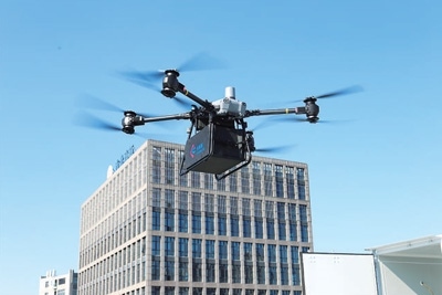 飛行在上海市北高新園區(qū)的載貨無人機。