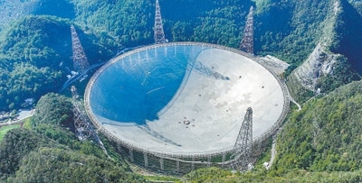 “中國(guó)天眼”全景(維護(hù)保養(yǎng)期間拍攝)。