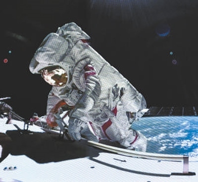 神舟十七號(hào)航天員湯洪波在空間站組合體艙外作業(yè)畫(huà)面。
