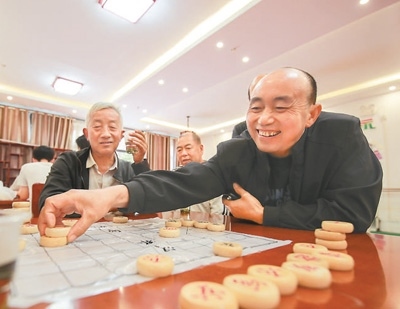 貴州省黔東南苗族侗族自治州岑鞏縣在新型城鎮(zhèn)化建設(shè)中,大力建設(shè)社區(qū)服務(wù)中心、圖書室等場(chǎng)所,完善服務(wù)功能,提升群眾幸福感。圖為社區(qū)居民在該縣大有鎮(zhèn)大坪同心社區(qū)下象棋。