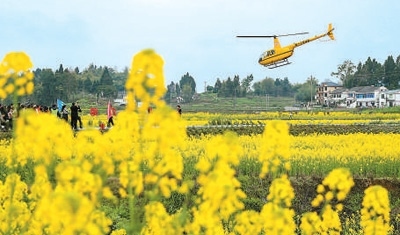 4月以來,四川省崇州市的30萬畝油菜花競相綻放,從空中俯瞰,將會帶來不一樣的感受。為此,當(dāng)?shù)亻_通了“低空航線”,游客在半小時的低空飛行中,不僅可以俯瞰一望無際的油菜花海,還能欣賞附近錯落有致的民居庭院。此外,當(dāng)?shù)剡€推出花海跳傘項目,將極限運動融入賞花,帶給游客別樣的體驗。
