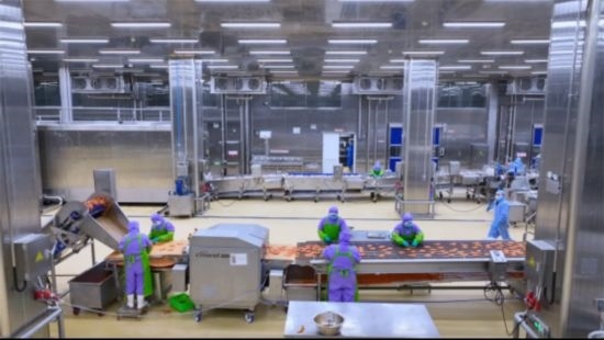 初夏時節(jié),膠東半島的微風中帶著一絲清爽,而春雪集團的生產(chǎn)基地內(nèi)卻是一派熱火朝天的景象。走進春雪集團的生產(chǎn)廠區(qū),廠房里的溫度、濕度甚至空氣流動都在嚴密控制之下,身穿防護服的員工們在現(xiàn)代化流水線上有條不紊地操作。眼前的白羽雞在檢驗、宰殺、分割、滾揉、調(diào)理與包裝等環(huán)節(jié)中“闖關”般地被一一標記、質(zhì)檢,井然有序地進入下一道工序。