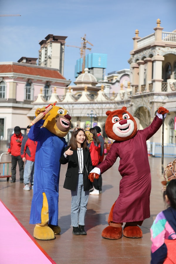 游客與“熊大”“熊二”熱情互動(dòng) 記者 張楊攝影