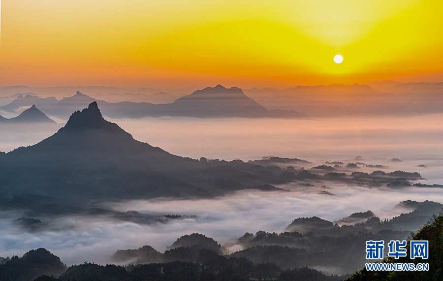 宛如薄紗的平流霧在山澗河谷漫舞。新華網發(fā)(瞿明斌 攝)