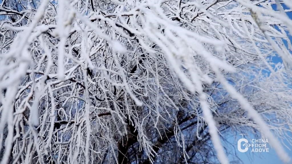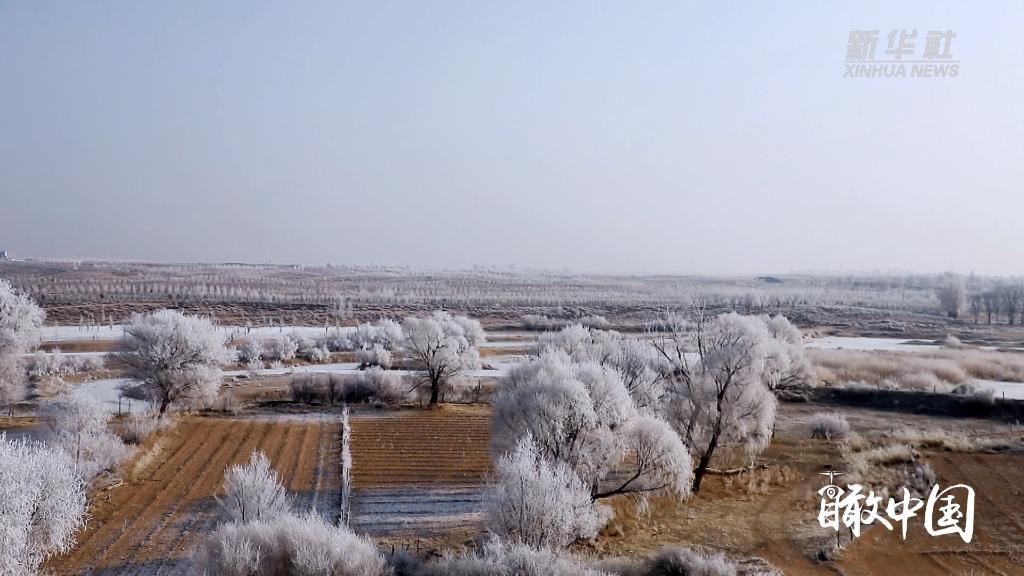 寒冬時(shí)節(jié),內(nèi)蒙古自治區(qū)鄂爾多斯市杭錦旗出現(xiàn)大面積的霧凇景觀,美不勝收。晶瑩剔透的冰晶掛滿樹梢,仿佛蒙上一層唯美的白紗。