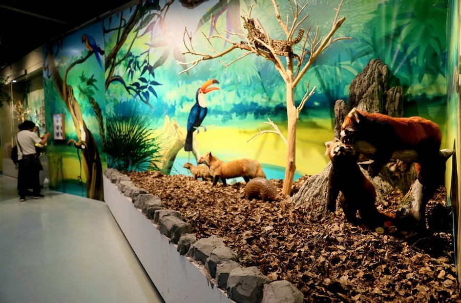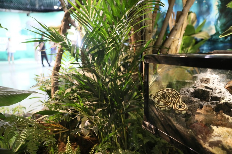 此次展覽主要以實(shí)景植物造景、活體動(dòng)物和圖文展板相結(jié)合的方式進(jìn)行展示。其中活體動(dòng)物有30多種約300只,包括鸚鵡、守宮、蛇、蜥蜴等鳥(niǎo)類和爬行類動(dòng)物。