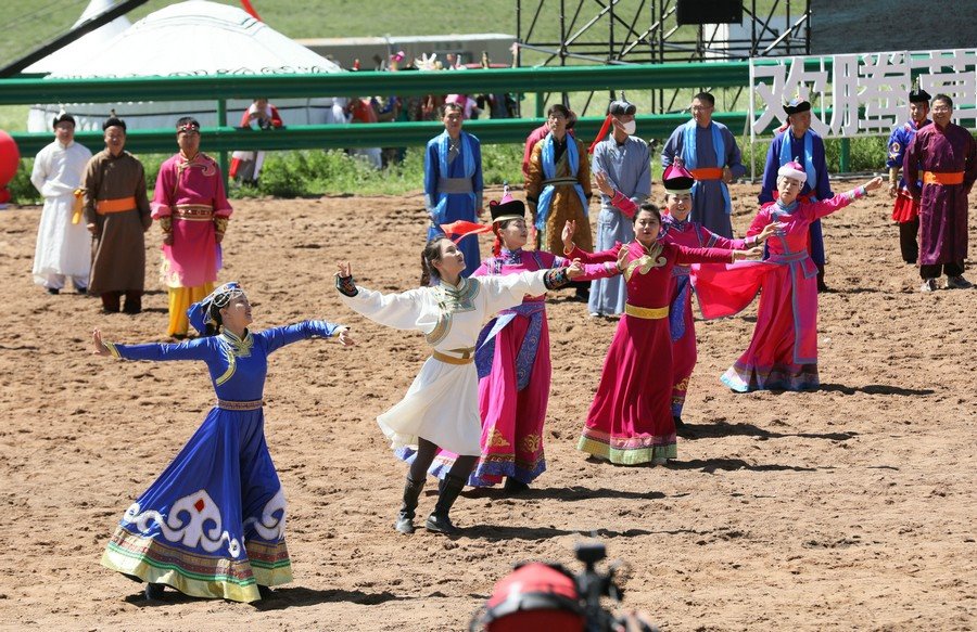 伴著悠揚(yáng)的歌聲,踏著激昂的步伐,在旗幟方隊(duì)的引領(lǐng)下,哈達(dá)方隊(duì)、民族方隊(duì)、烏蘭牧騎方隊(duì)、牧馬人方隊(duì)、裁判員及運(yùn)動(dòng)員方隊(duì)依次走進(jìn)會(huì)場(chǎng)。隨著彩煙燃放,氣球升空,那達(dá)慕在梅林組合的歌曲《歡騰那達(dá)慕》中拉開(kāi)帷幕。隨后,歌伴舞《石榴花開(kāi)》等節(jié)目輪番登場(chǎng),現(xiàn)場(chǎng)觀眾掌聲雷動(dòng),讓來(lái)自全國(guó)各地的游客在紅石崖高山牧場(chǎng)領(lǐng)略了草原的柔情。