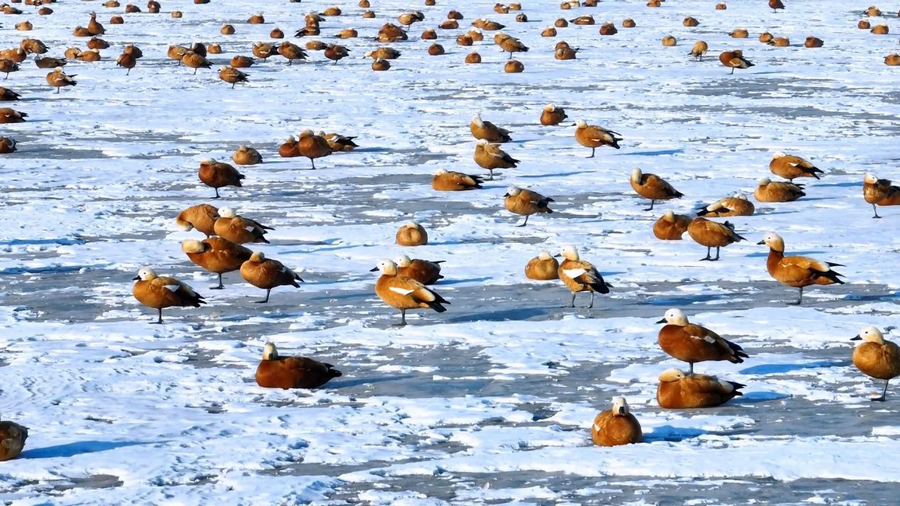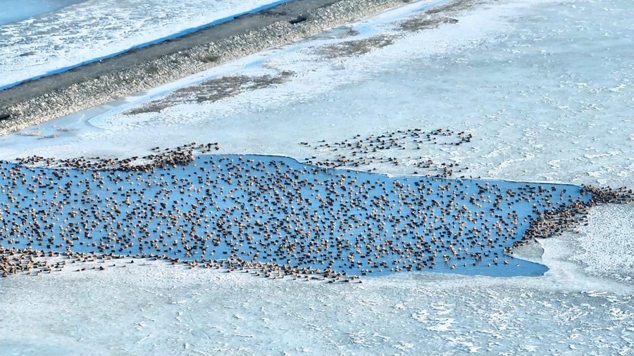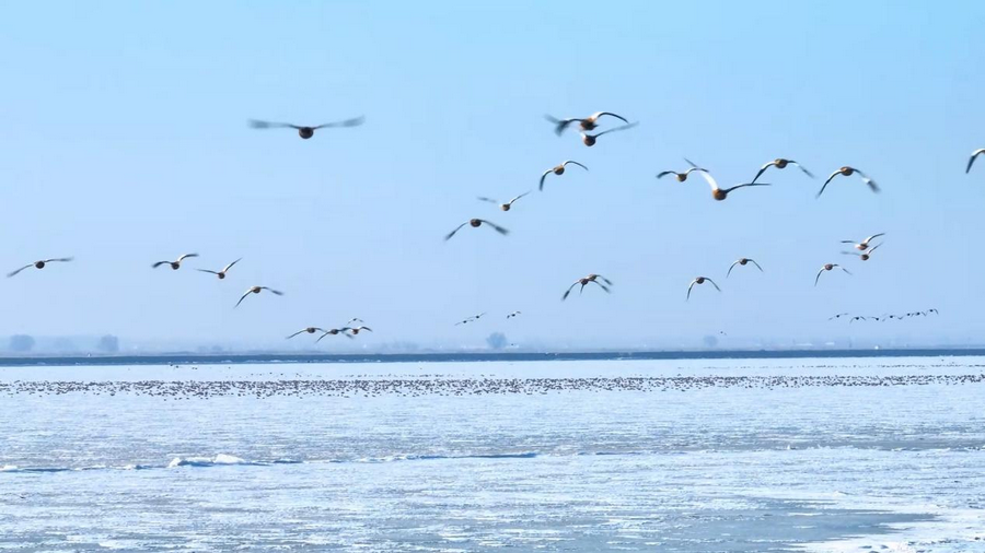 隨著天氣轉(zhuǎn)暖,冰雪消融,土默特左旗的海流水庫(kù)迎來(lái)了大批北歸的候鳥(niǎo)。它們或在水面上嬉戲覓食,或在空中自由翱翔,為初春封凍的水庫(kù)增添了一抹靈動(dòng)的色彩。