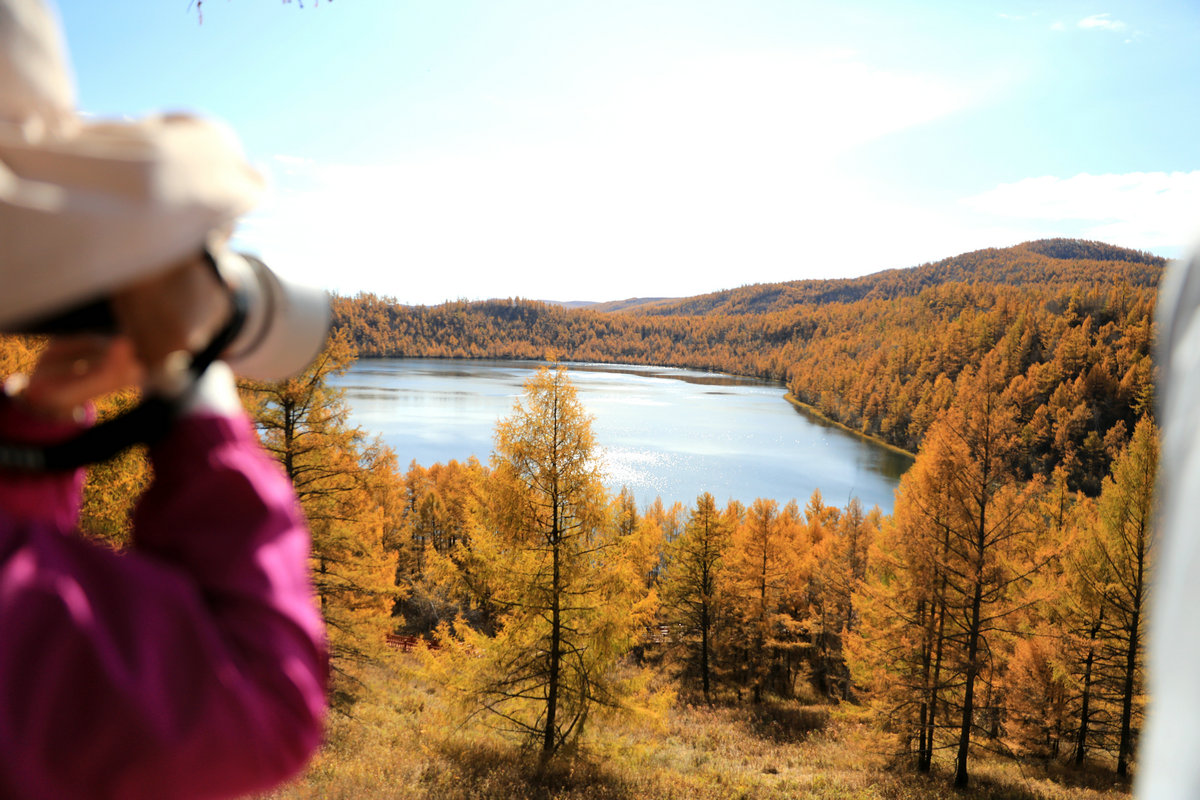 9月29日,游客在內(nèi)蒙古阿爾山國(guó)家森林公園杜鵑湖拍照打卡 北疆新聞?dòng)浾?張楊攝影