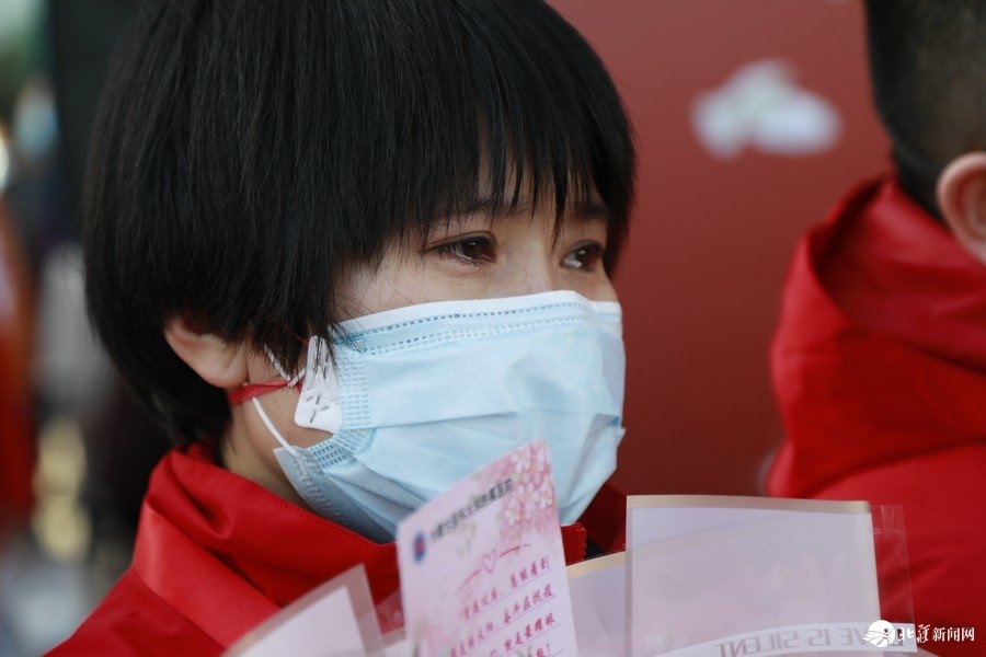 下午1點(diǎn)30分,附院醫(yī)療隊(duì)隊(duì)員與共同奮戰(zhàn)了60多天的區(qū)內(nèi)其他醫(yī)院隊(duì)員告別,乘車踏上回家的征程。