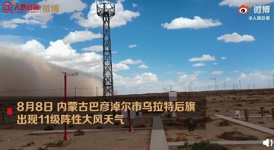 8月8日16時12分至16時23分,內蒙古自治區(qū)巴彥淖爾市烏拉特后旗獲各琦蘇木海力素國家基準氣候站出現(xiàn)11級陣性大風天氣,最大瞬時風速28.5m/s,達到11級,海力素最小能見度192米,出現(xiàn)強沙塵暴天氣。(張棖 王衛(wèi)東)