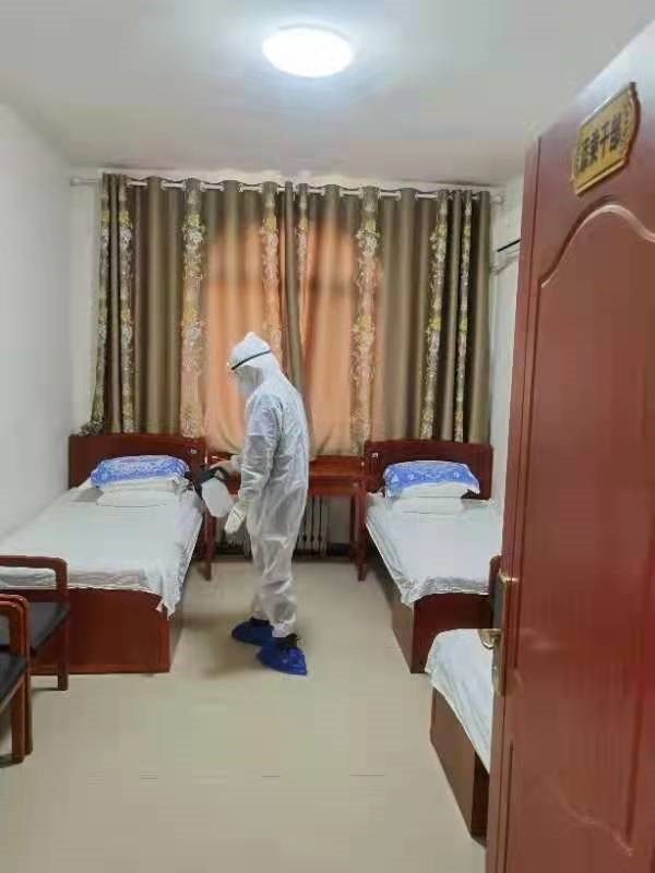 對樓層全封閉管理,增加公共區(qū)域消殺頻次,為負(fù)責(zé)清潔消殺人員配發(fā)了防護(hù)服、護(hù)目面罩、醫(yī)用手套,確保工作人員自身安全,認(rèn)真做好自身防護(hù)的同時(shí),對停留公寓的14名乘務(wù)人員每日做好測溫登記、住宿房間進(jìn)行全面消殺,為他們提供清潔舒適、安全的住宿環(huán)境。