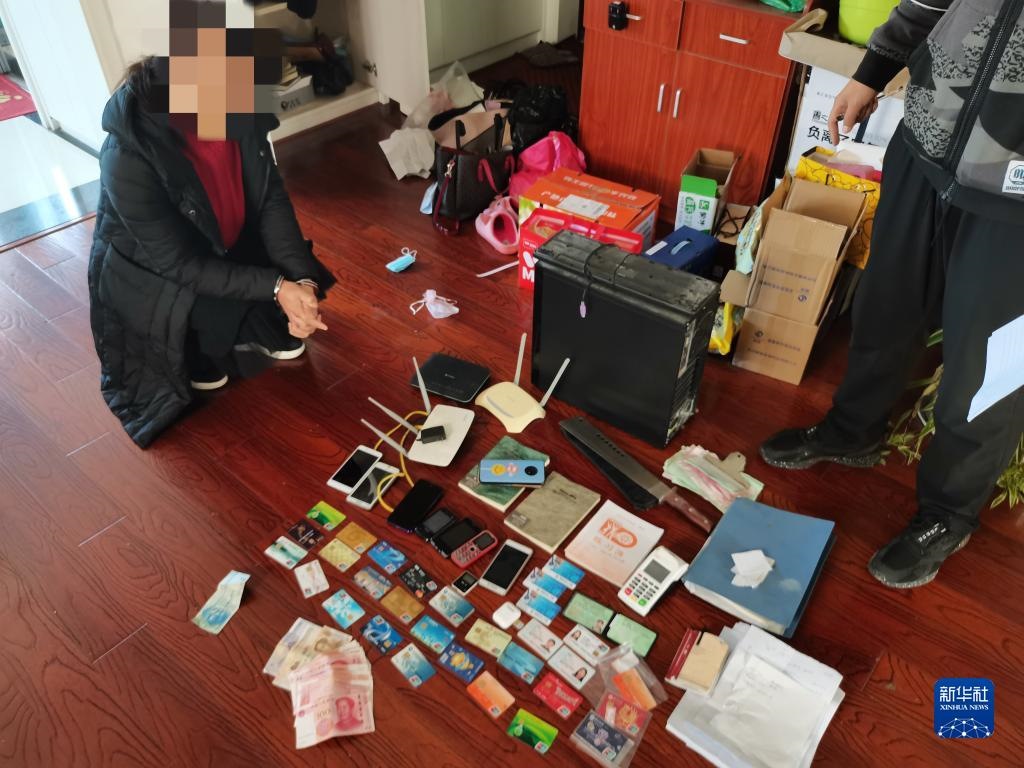 這是民警在一處窩點(diǎn)抓獲的犯罪嫌疑人及在現(xiàn)場查獲的部分犯罪工具。(受訪單位供圖)