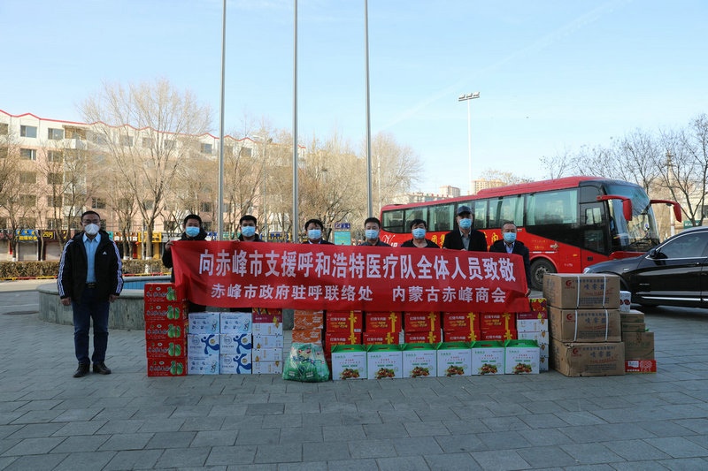 北疆新聞網(wǎng)、北疆新聞APP、北疆云消息(馬國鑫)2月27日,赤峰市政府駐呼和浩特聯(lián)絡(luò)處攜手內(nèi)蒙古赤峰商會,共同發(fā)起“致敬家鄉(xiāng)馳援呼市一線醫(yī)療隊”慰問活動,向來自家鄉(xiāng)的“戰(zhàn)疫”英雄送去誠摯的問候和急需的防疫和生活物資。