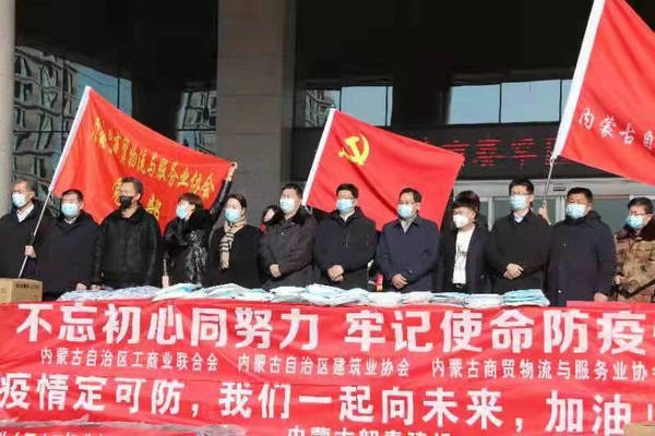 2月21日15時,內蒙古水處理設備行業(yè)協(xié)會秘書長高有帶隊,與呼和浩特市工商聯(lián)一起,向疫情比較嚴重的武川縣捐贈價值1萬多元的消毒液和口罩等抗疫物資,支持武川抗擊疫情。