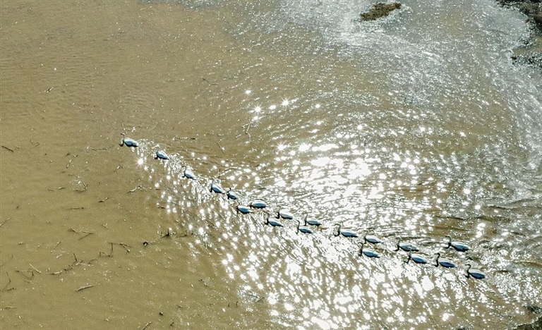 4月1日是國際愛鳥日。當(dāng)天下午,記者在呼和浩特市托克托縣伍什家鎮(zhèn)附近看到,正值春灌時(shí)節(jié),沿路兩側(cè)阡陌縱橫的田地里一片“汪洋”,棲息著成群結(jié)隊(duì)的天鵝,時(shí)而引吭高歌,時(shí)而梳理羽毛,時(shí)而追逐嬉戲。偌大的田地仿佛天鵝湖一般,呈現(xiàn)出靈動(dòng)優(yōu)美的自然畫卷。